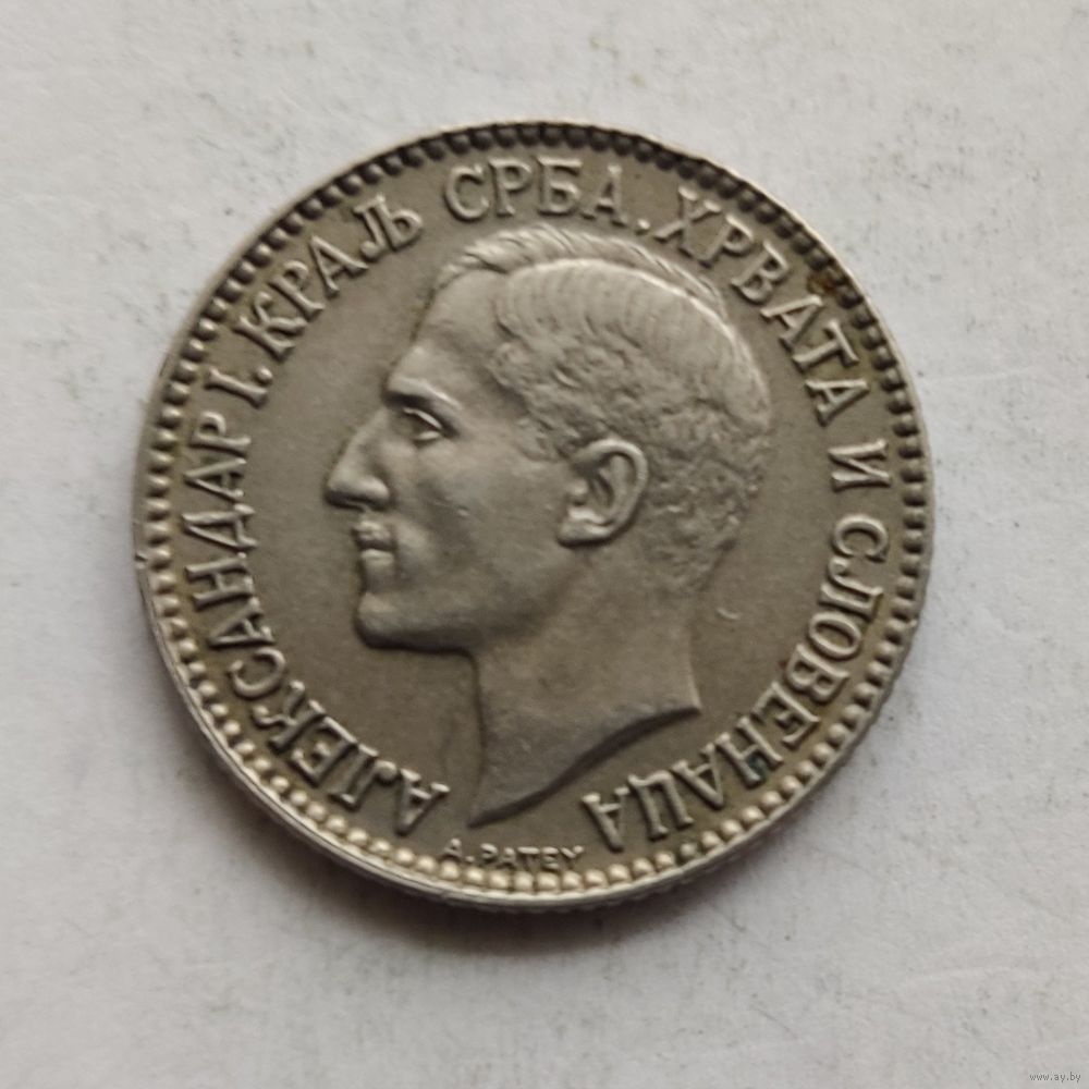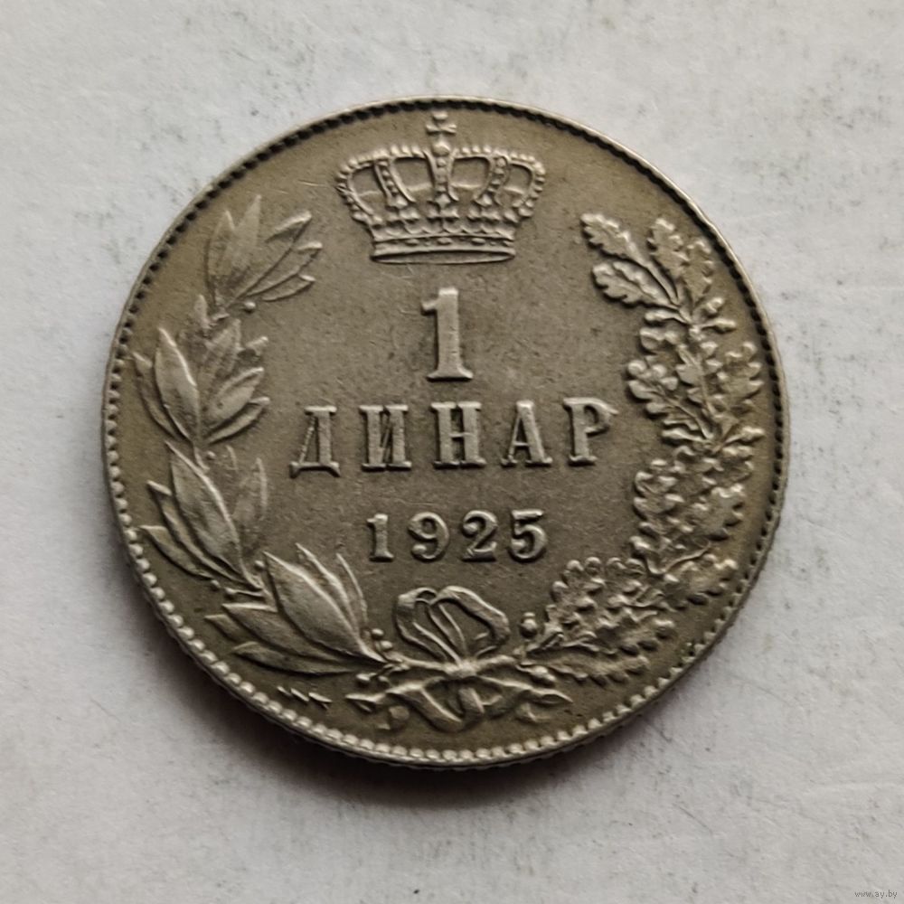 Номер  KM # 5  Страна  Югославия  Период  Королевство Югославия (1918 - 1941)  Правитель  Александр I  Валюта  Югославский динар  Вид чекана  Регулярный чекан  Номинал 1 динар  Год 1925  Гурт  Рубчатый  Форма  Круг  Отношение авс/рев  Монетное (180°)  Материал  Медно-никелевый сплав  Вес (g)  4,92  Диаметр (mm)  23  Толщина (mm)  1,8