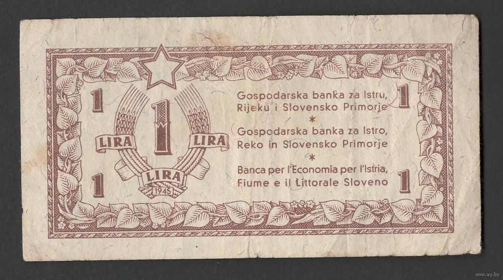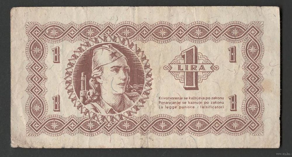 Югославия 1 лира 1945 года. Тип P-R1. Состояние VF