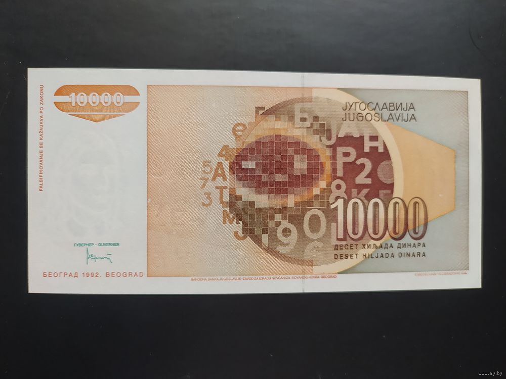 Югославия. 10 000 динаров (образца 1992 года, P116a, UNC)