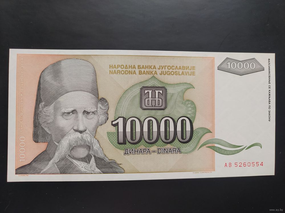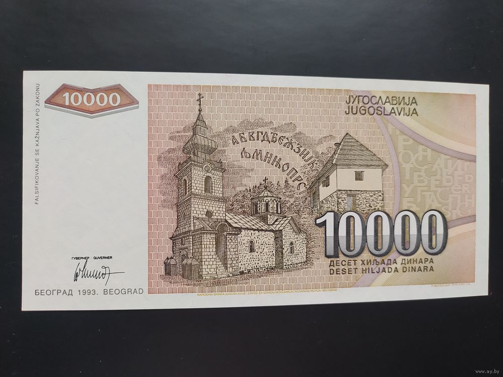 Югославия. 10 000 динаров (образца 1993 года, P129, UNC)