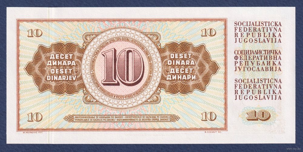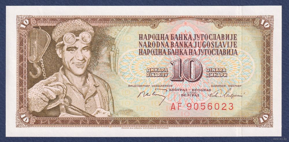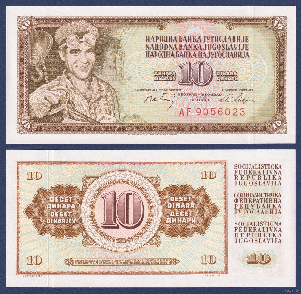 Югославия, 10 динар 1968 г, P-82c (AF, сталевар Ариф Гералич), UNC