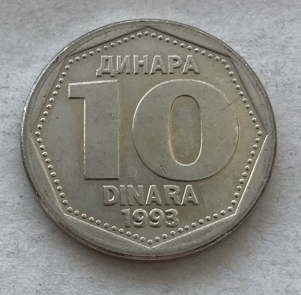 Югославия 10 динар 1993 - в блеске, один год чекана!