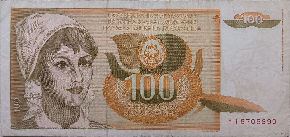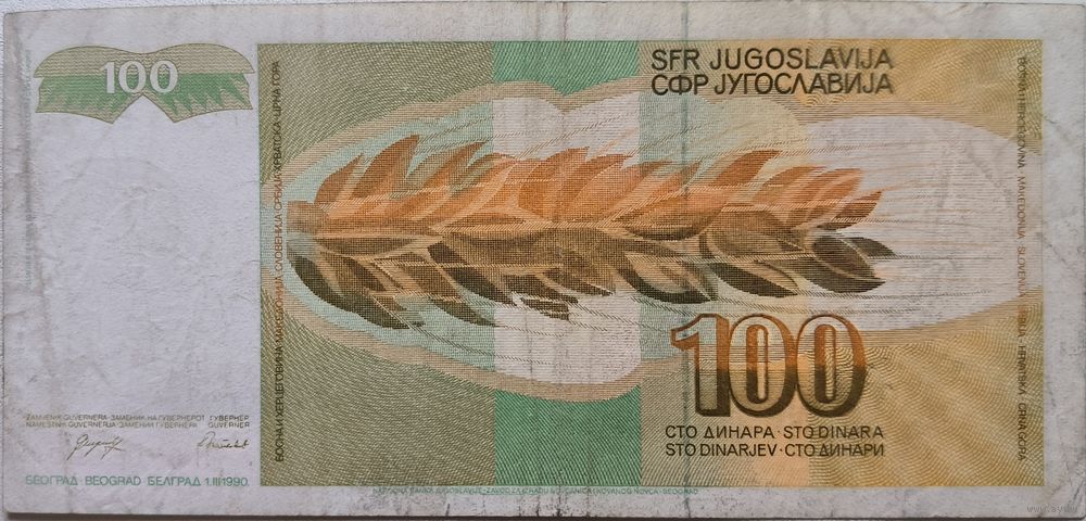 Югославия 100 Динар 1990 VF 145