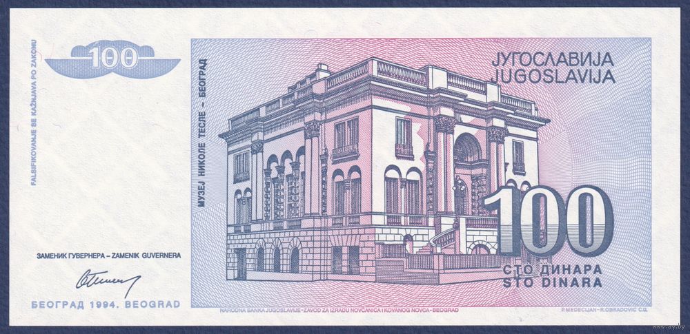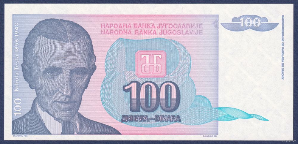 Югославия, 100 динар 1994 г., P-139 (Никола Тесла), UNC