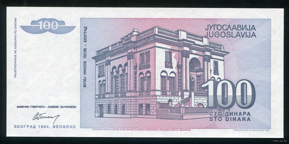 Югославия 100 динар 1994 г. P139. UNC