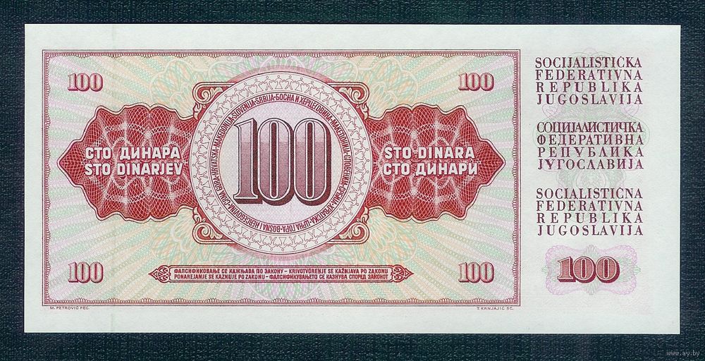 Югославия 100 динаров 1981 год, UNC