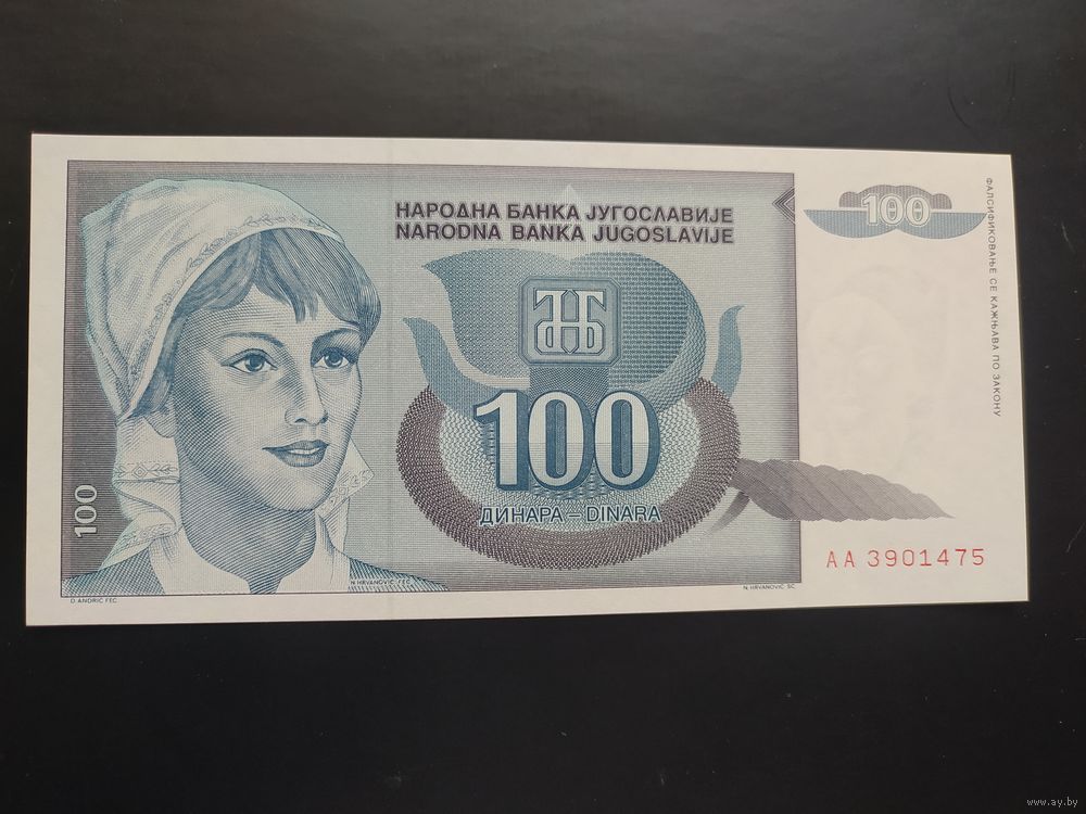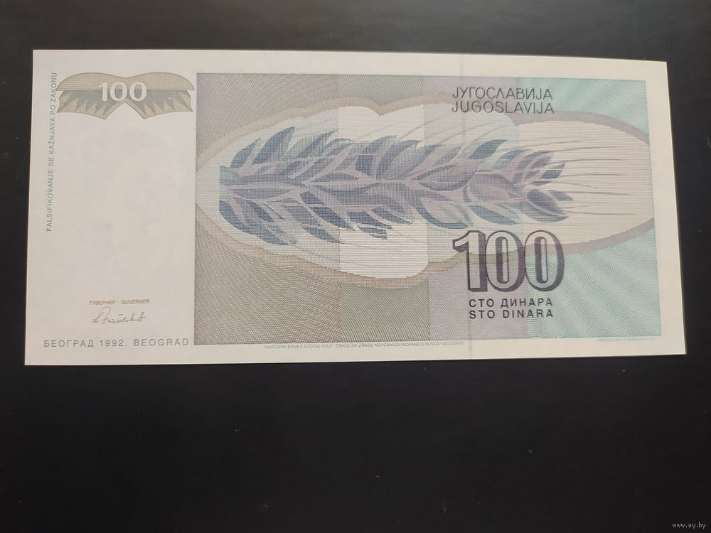 Югославия. 100 динаров (образца 1992 года, P112, UNC, AA)