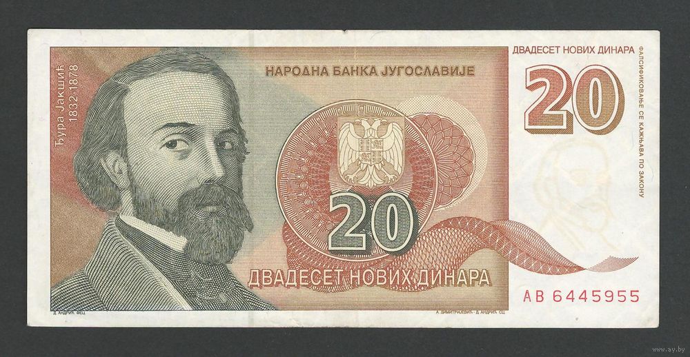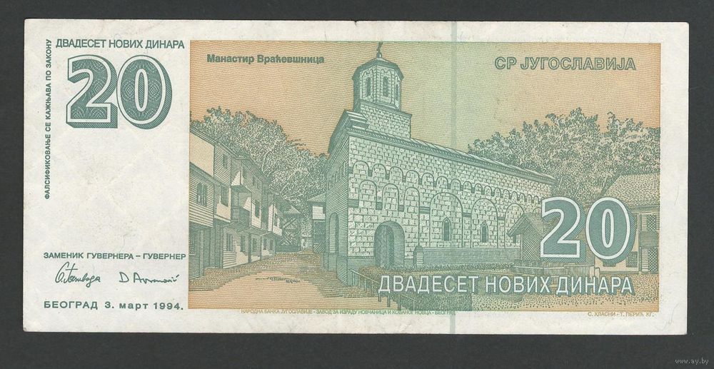 Югославия 20 динар 1994 года. Тип P-150. Состояние XF
