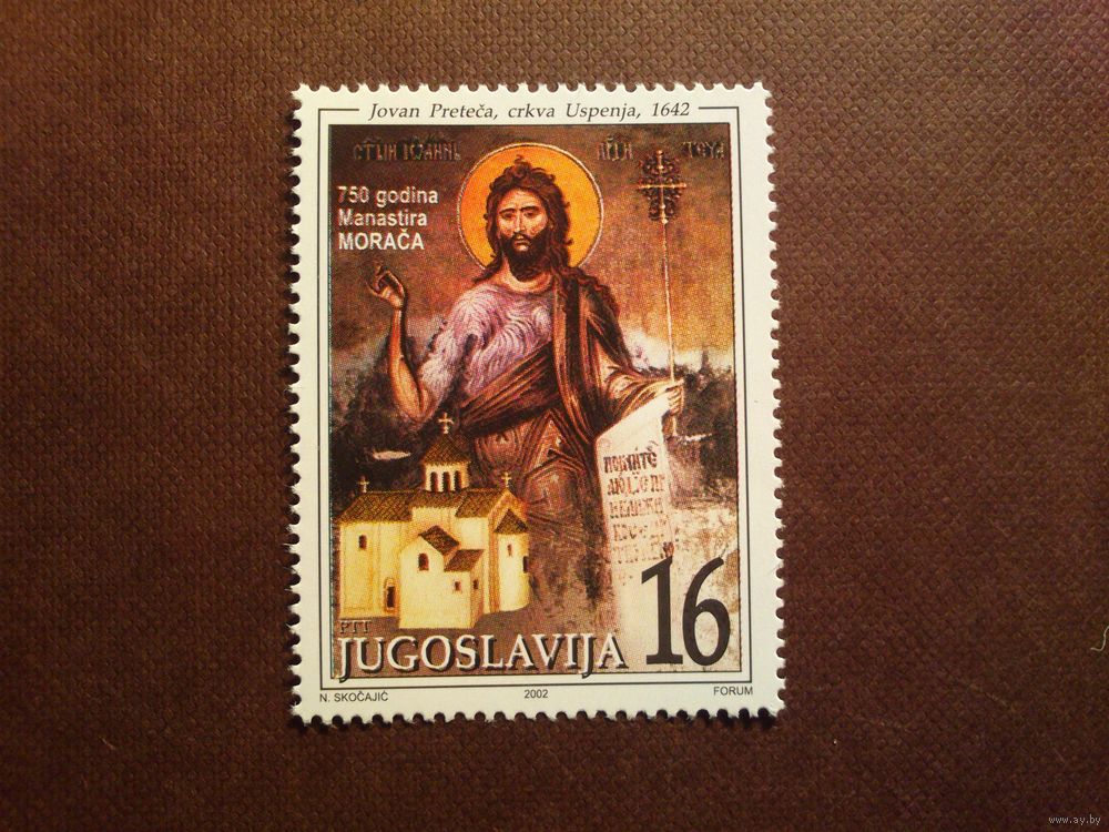 Югославия 2002 г.Монастырь Морача,Черногория.Чистая с клеем.