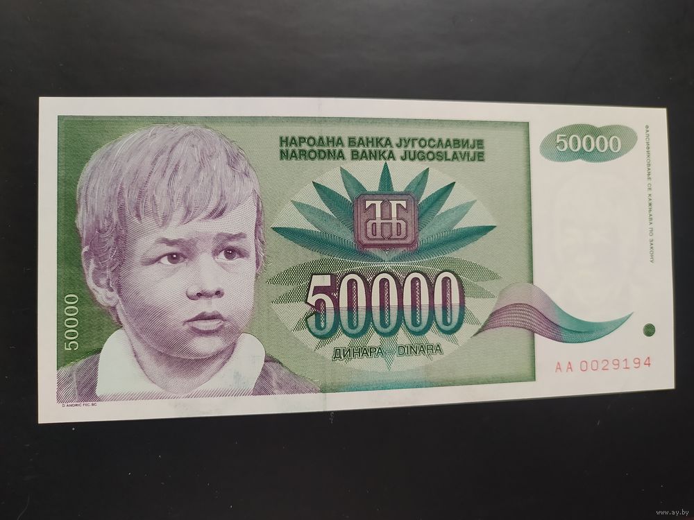 Югославия. 50 000 динаров (образца 1992 года, P117, UNC, AA)