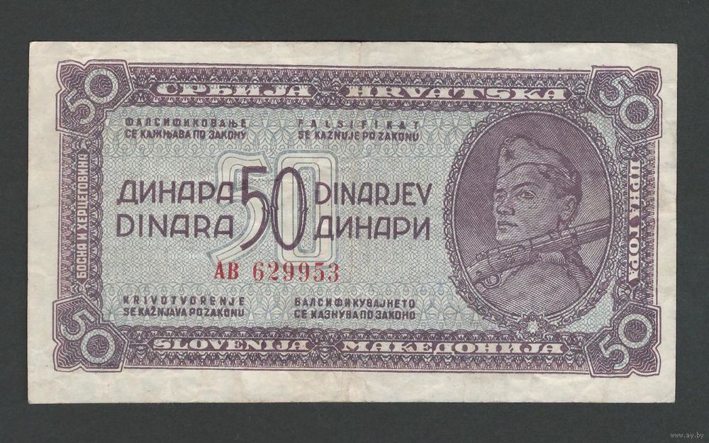 Югославия 50 динар 1944 года. Российский выпуск. Тип Р-52a. Состояние XF