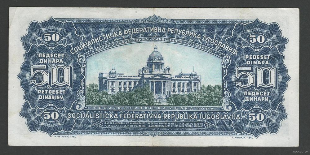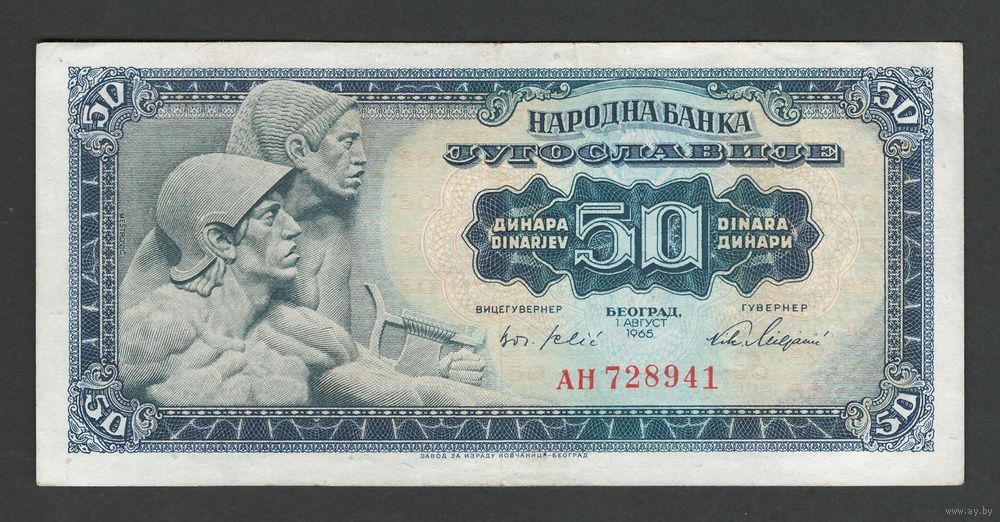 Югославия 50 динар 1965 года. Тип P-79b. Большой номер. Состояние XF