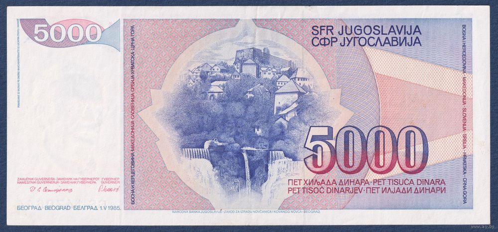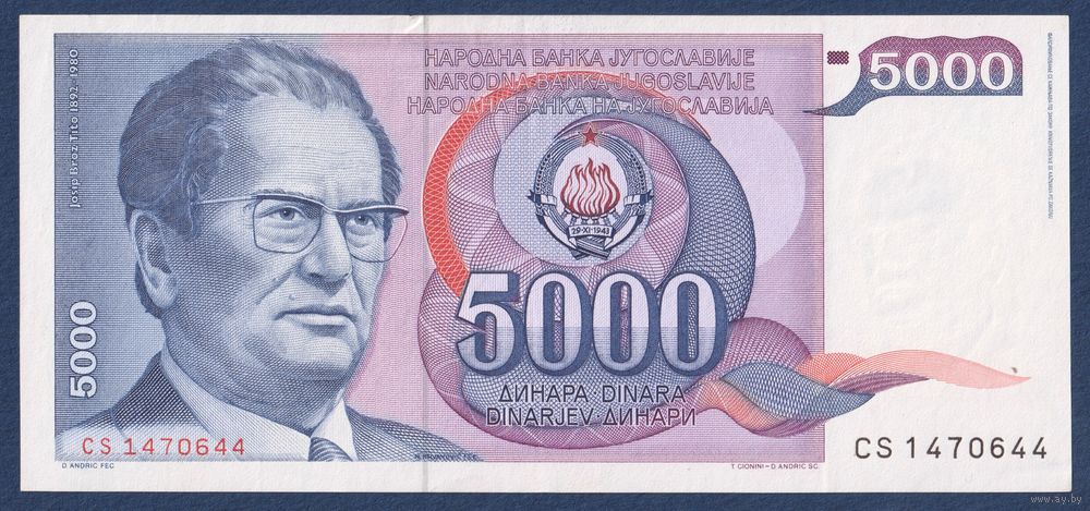Югославия, 5000 динаров 1985 г, P-93a (CS, президент Иосип Броз Тито), XF