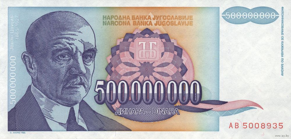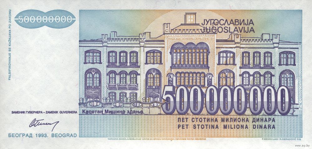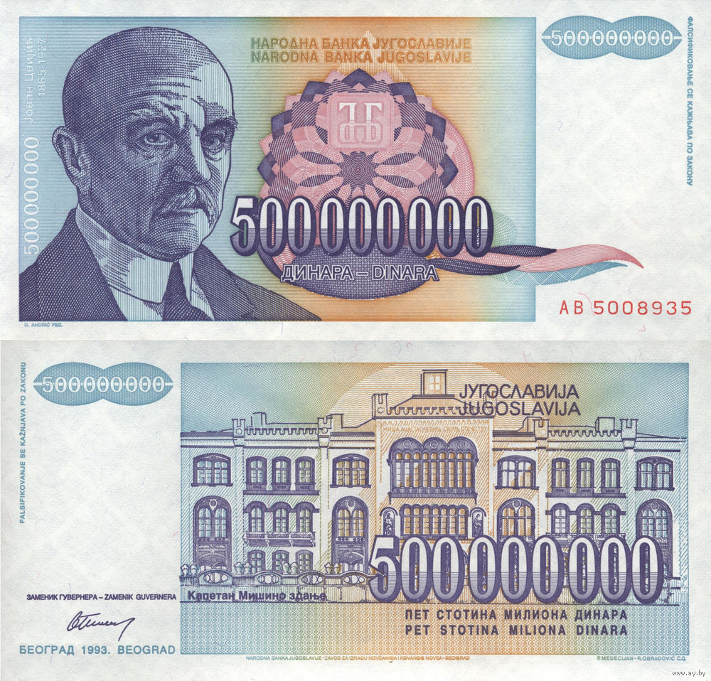 Югославия 500000000 Динар, 500 Миллионов Динар 1993 UNС П2-130