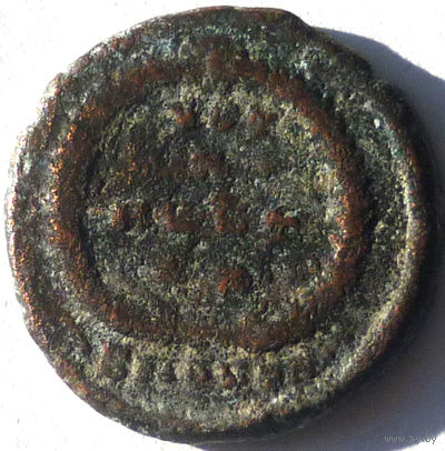 Julian II, AE follis, Antioch. 361-363 AD. DN FL CL IVLIANVS PF AVG, pearl-diademed, helmeted and cuirassed bust left, holding spear and shield. / VOT-X-MVLT-XX in four lines within wreath. Mintmark SMANTB. 20 mm.