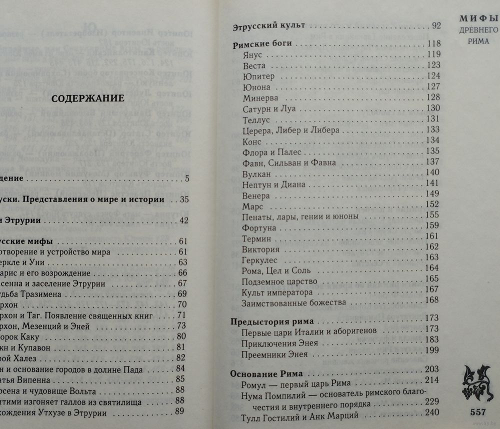 Большой формат. Ляссе. Тираж 10000 экз. 568 стр. Имена Юпитера и Венеры, Марса и Флоры известны всем с детства. А вот на вопрос, кто такой Мутунус Тутунус или, например, Вириплака, мало кто сможет ответить. Наша книга познакомит вас с большим кругом римских и этрусских божеств, легендами из жизни мифических и исторических царей и императоров. Издание не только представляет мифологию Древнего Рима и загадочной Этрурии в наиболее полном объеме, но и богато иллюстрировано прекрасными произведениями скульпторов и художников разных эпох.