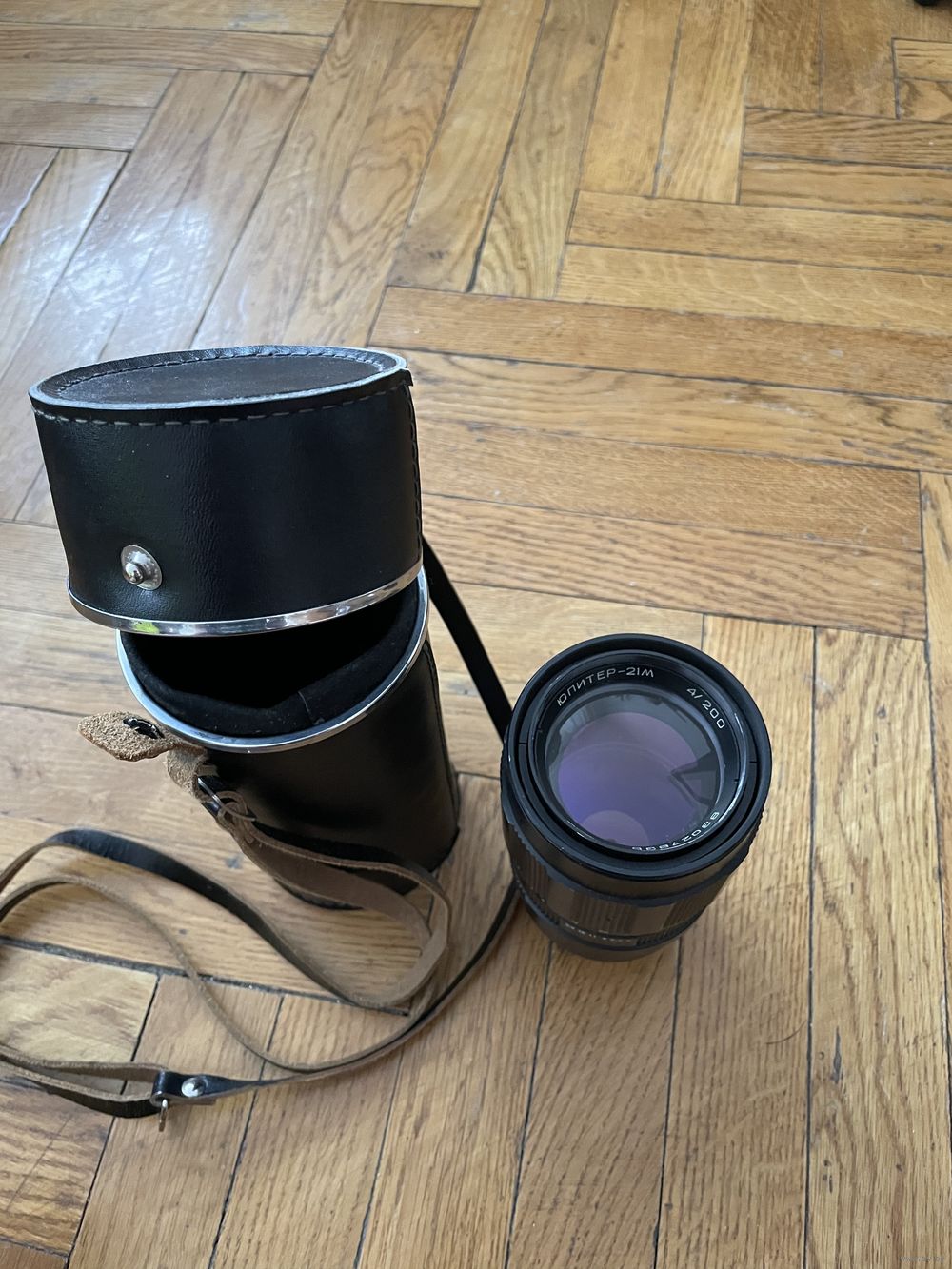 В комплекте объектив, крышка на переднюю линзу + кофр