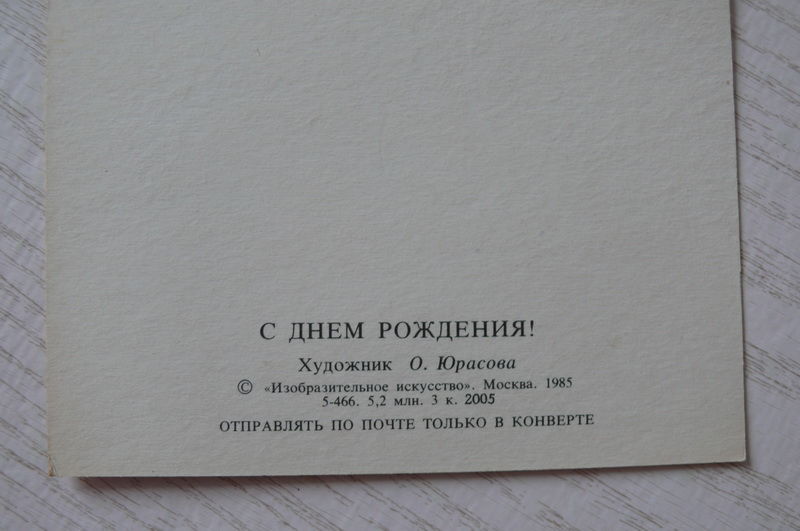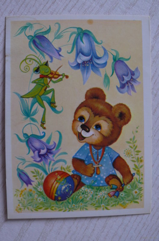 Юрасова О., С днем рождения! 1985, чистая (медвежонок, кузнечик, скрипка).