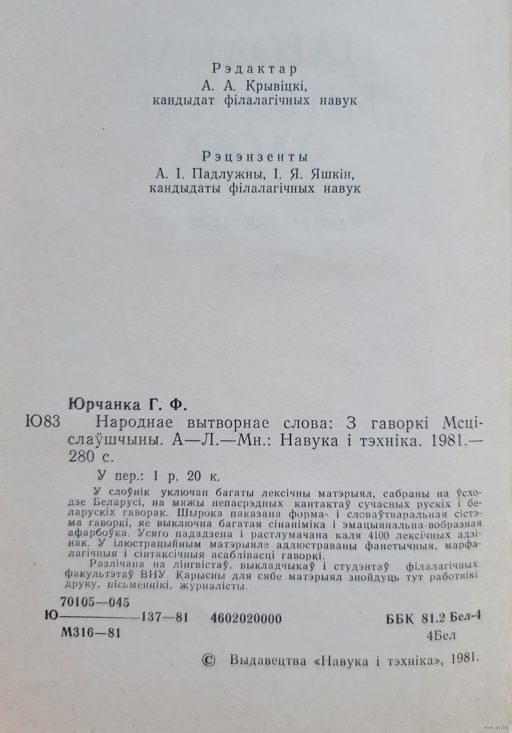 Юрчанка Народнае вытворчае слова А - Л з гаворкі Мсціслаўшчыны