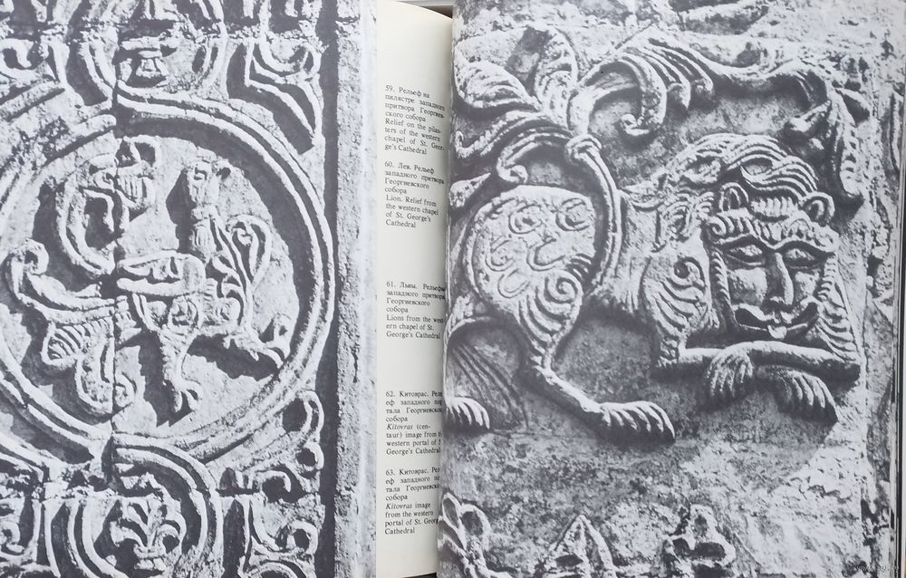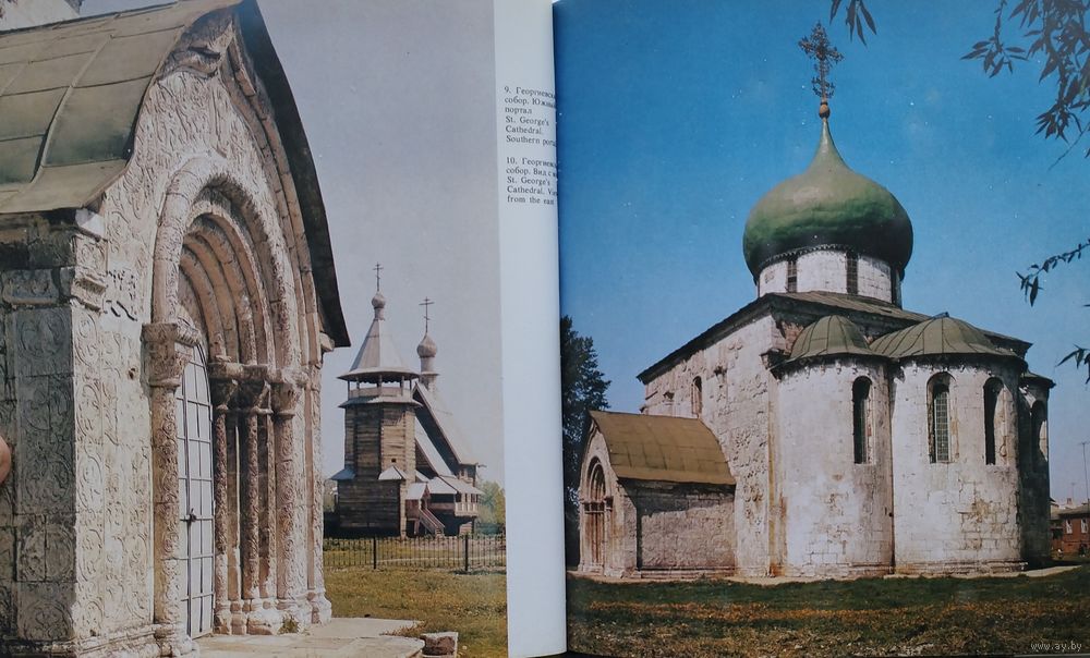 Большой энциклопедический формат. Мелованный альбом. Ляссе. Тираж 30000 экз. 144 стр. Альбом цветных и черно-белых иллюстраций, представляющих замечательный памятник Русского зодчества домонгольского периода 12-13 вв. В сохранившейся каменной резьбе Георгиевского собора сочетаются как христианские мотивы, так и языческие индо-арийские символы - от кентавров до Семаргла. Юрьев-Польский - город районного подчинения, административный центр Юрьев-Польского района, в 68 км к северу от Владимира; основан в 1152 году Юрием Долгоруким на егу реки Колокши. Город получил свое название в честь святого, покровителя князя Юрия Долгорукого. Вторая часть названия города утвердилась позднее, не ранее XV-XVII вв. Большинство историков и краеведов определяют смысл этого слова как "стоящий на полях". История Юрьева проста и немногосложна. Юрьев был новым городом, основанным князем на еще не обжитом месте. В Юрьев, как и в другие свои новые города, князь привлекал поселенцев не только из русских, но и из болгар и финно-угорских племен, давая им "ссуду и пожалование", благодаря которым новое городское военное и ремесленное население становилось в зависимости от князя. И прежде всего была построена крепость и в ней белокаменная княжеская церковь Георгия. Новый город не играл большой роли в XII веке, только битва 1177 г. принесла победу Всеволоду III, надолго ослабив силы старой феодальной знати и упрочив положение и власть владимирской династии. Сражение на Липицком поле (1216 г. ) было результатом усобицы между наследниками Всеволода; бой закончился поражением владимирских князей и торжеством ростовской княжеско-боярской каолиции. Целостность Владимирской земли была подорвана, и Юрьев в 1212 году стал центром небольшого удела, принадлежавшего сыну Всеволода III Святославу, с именем которого связано строительство нового Георгиевского собора. В это же время в городе был основан княжеский Михаило-Архангельский монастырь.