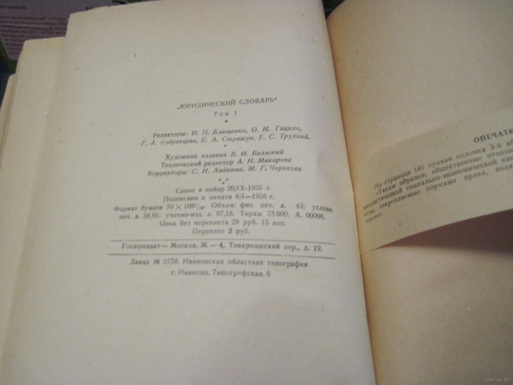 Юридический словарь. Том 1(А-Н), 1956 г.