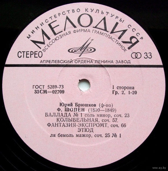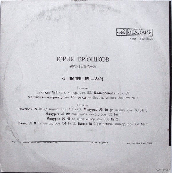 Юрий Брюшков - /Ф. Шопен/ – Фортепианная Музыка - 1977,Vinyl,LP,made in USSR.