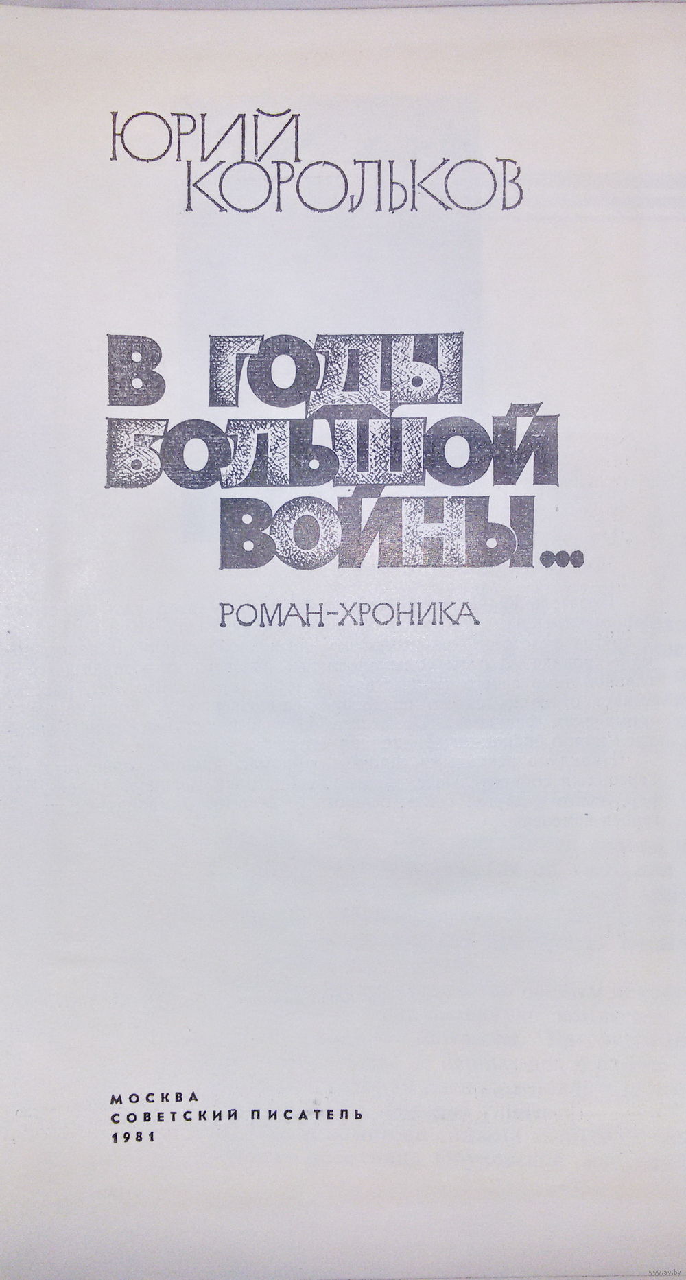 Юрий Корольков "В годы большой войны..." (роман-хроника), Москва, Сов.писатель, 1981г, 573с.