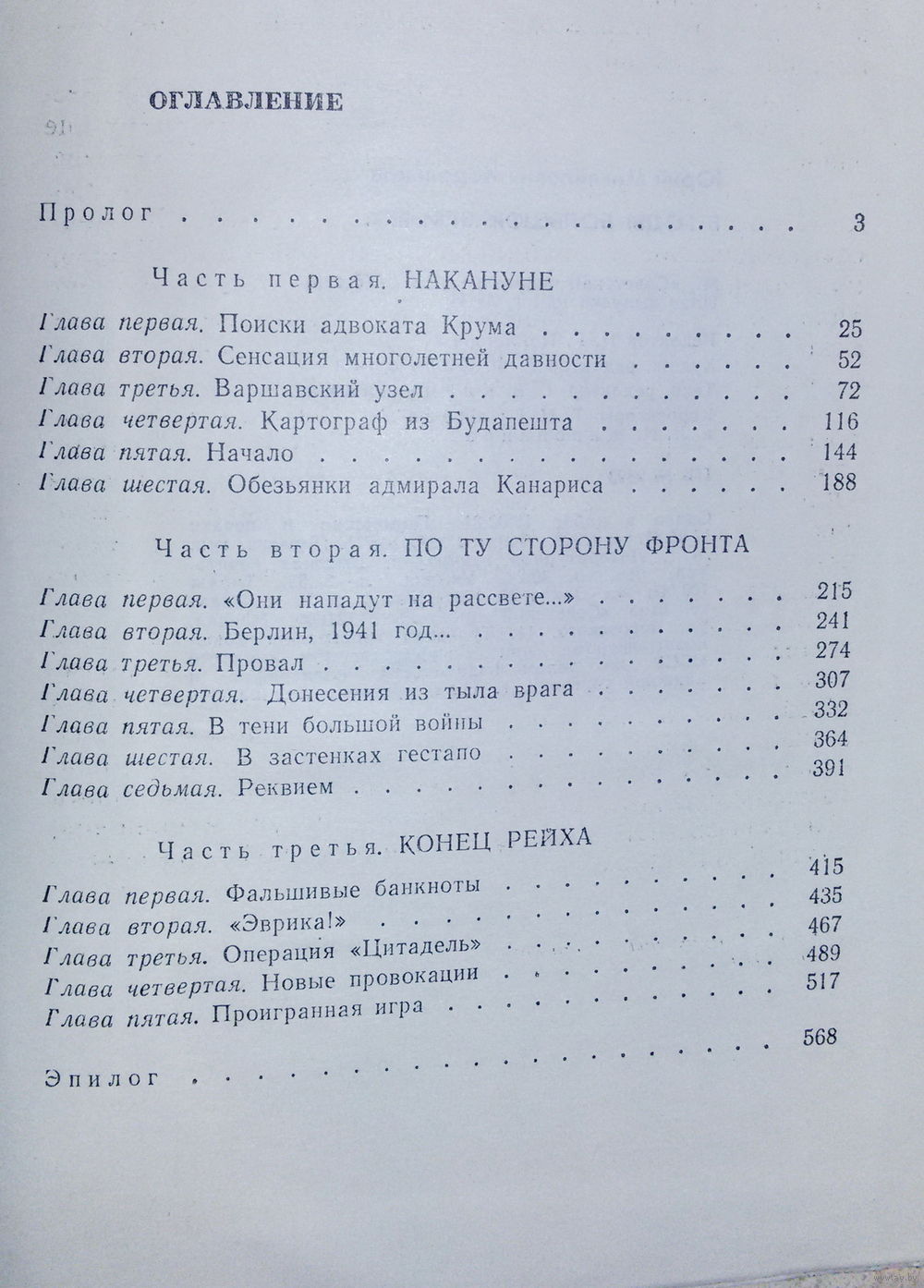 Состоит из 3частей: 1)Накануне 2)По ту сторону фронта 3) Конец Рейха.