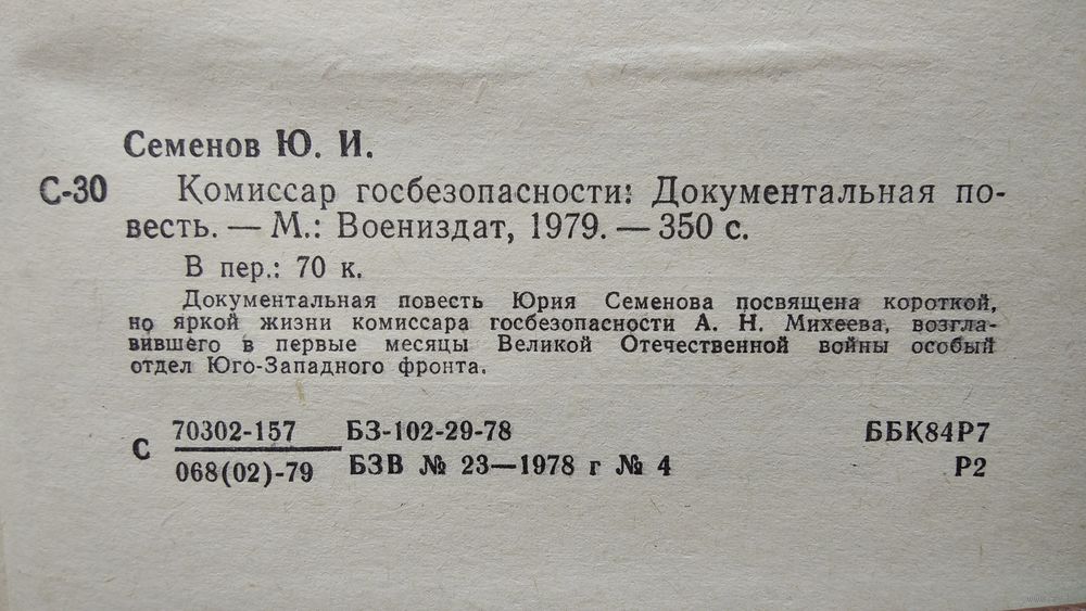Юрий Семёнов КОМИССАР ГОСБЕЗОПАСНОСТИ