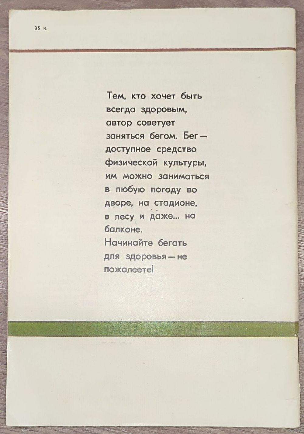 Автор, будучи специалистом в области физической культуры и спорта (профессор, доктор педагогических наук), рассматривает бег как доступное и эффективное средство укрепления здоровья. В аннотации к подобным методическим пособиям того времени обычно выделялись следующие аспекты: