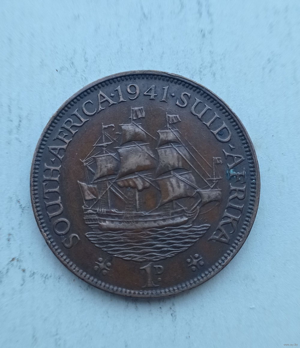 Южная Африка 1 пенни 1941 год король Георг VI парусник корабль