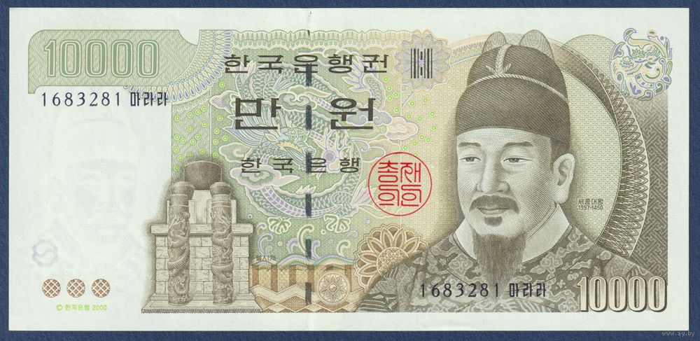 Южная Корея, 10000 вон 2000 г., P-52 (король Седжон Великий), UNC