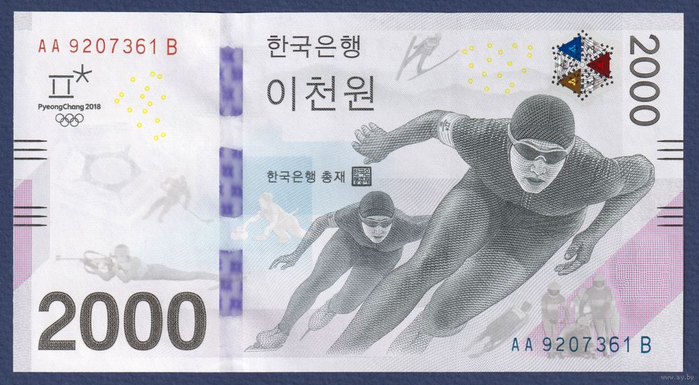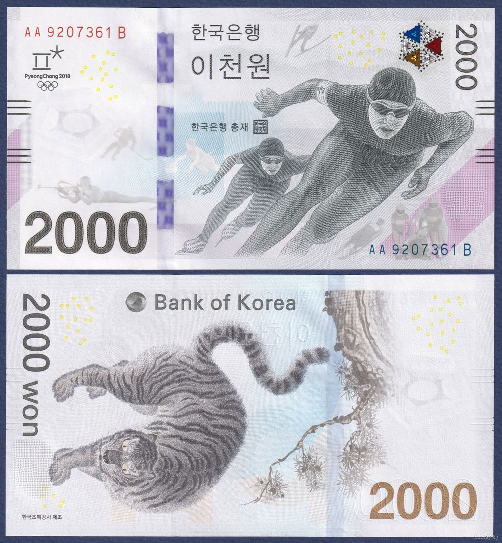Южная Корея, 2000 вон 2018 г, P-58 (AAB, памятная - Зимние Олимпийские игры), UNC