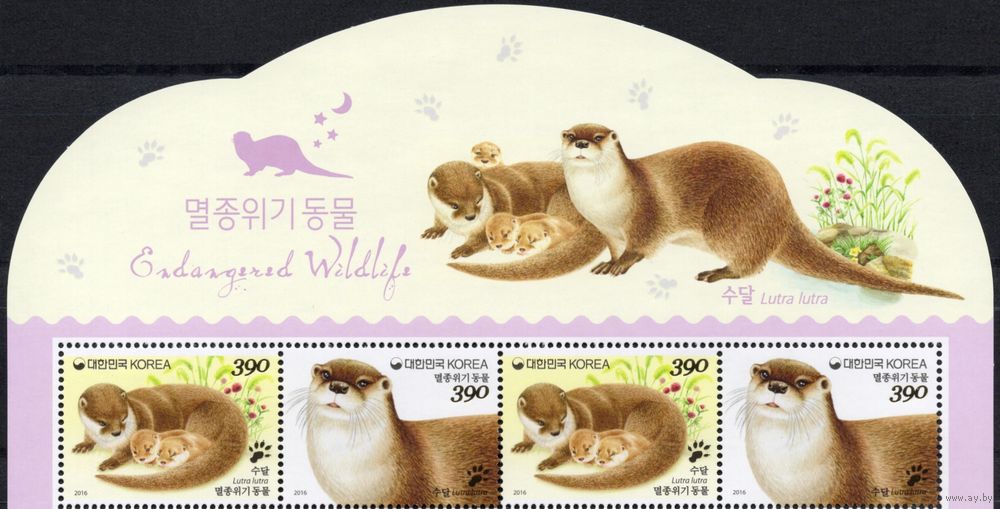 Южная Корея 2016. Фауна. Выдра. 2 сцепки с верхним полем Mi 3117-18
