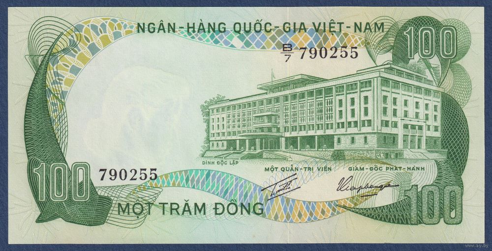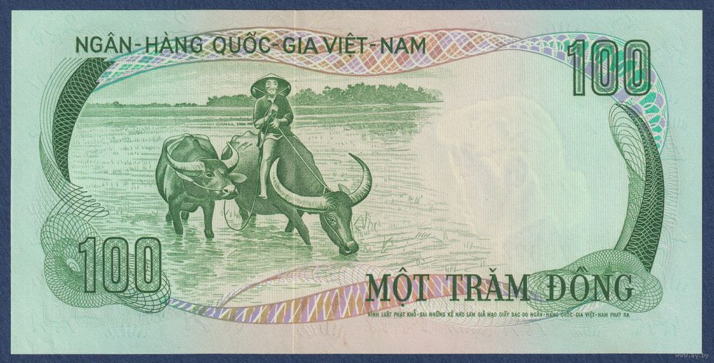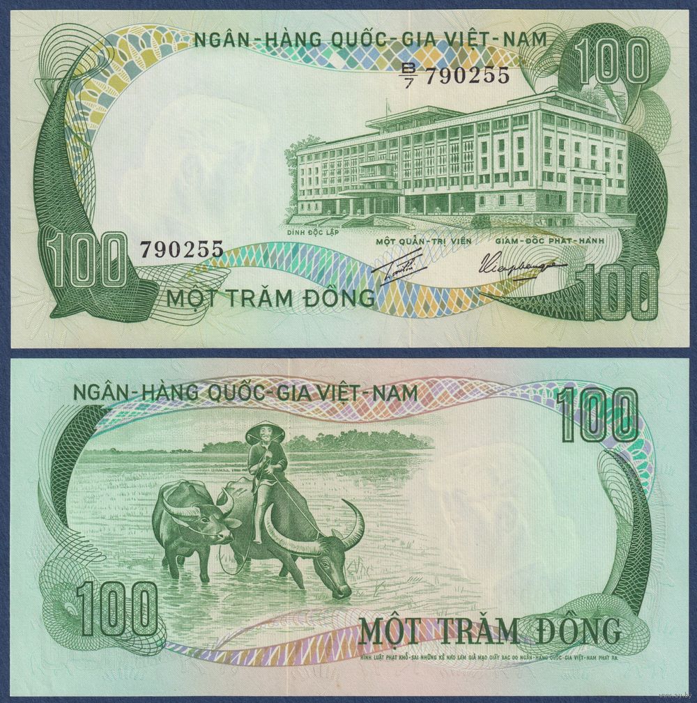 Южный Вьетнам, 100 донгов 1972 г., P-31 (B, дворец Независимости в Сайгоне, буйволы), UNC