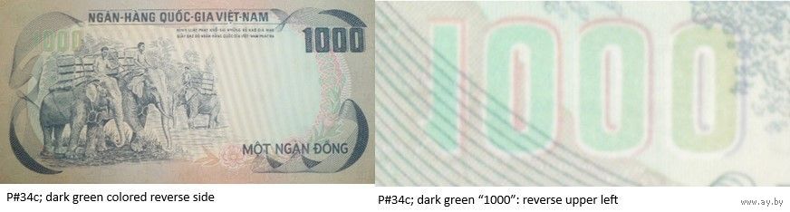 Оборотная сторона и номинал "1000" - тёмно-зелёного цвета.