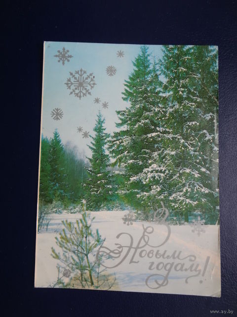 З Новым годам! 1983 г. Лес, снежинки. чистая.