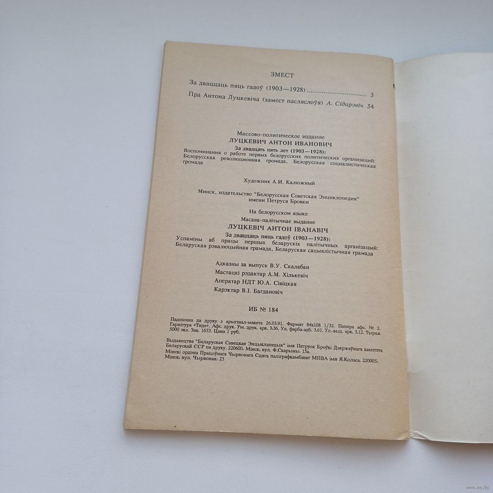 За двадцаць пяць гадоў. 1903-1928. Антон Луцкевіч.