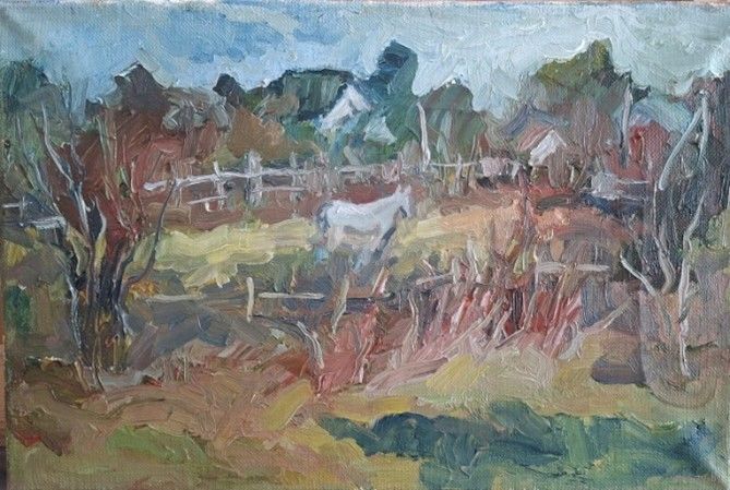 «За околицей», 2025, размер 20/30, холст, масло. Художник Гроусс Ольга