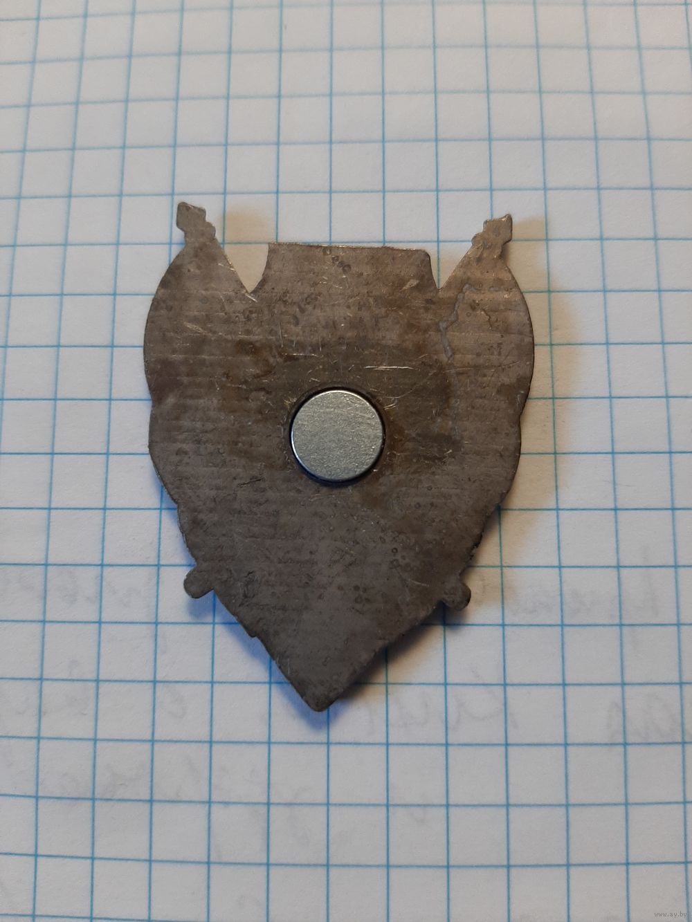 Тяжёлый метал, эмали. По сути, сделан как магнит на холодильник.