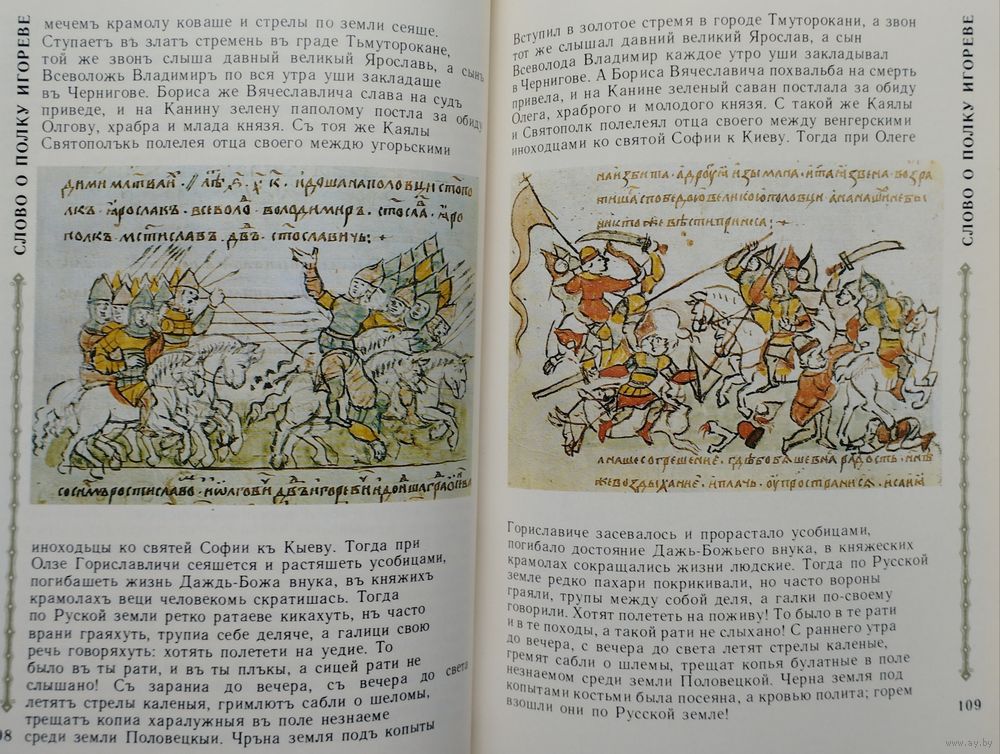 Большой формат. Мелованный альбом. Ляссе. Тираж 30000 экз. 528 стр. В настоящую книгу собраны произведения древнерусской литературы XI-XV веков, рассказывающие о подвиге народа в борьбе за национальную независимость; среди них и широкоизвестные древнейшие летописные тексты из "Повести временных лет", общепризнанные шедевры древнерусской литературы "Поучение Владимира Мономаха", "Слово о полку Игореве", "Повесть о разорении Рязани Батыем", "Задонщина", "Сказание о Мамаевом побоище" и некоторые менее известные широкому читателю произведения. В сборнике представлены древнерусские тексты и их переводы на современный русский язык.