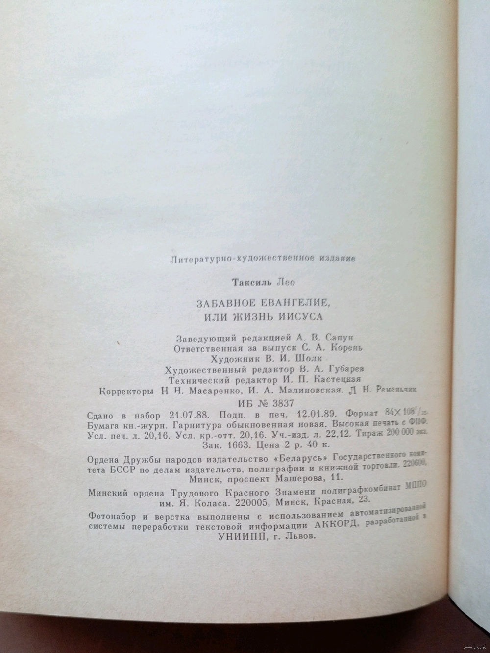 Забавное Евангелие, или Жизнь Иисуса. Лео Таксиль. Изд-во Беларусь. 1989г.