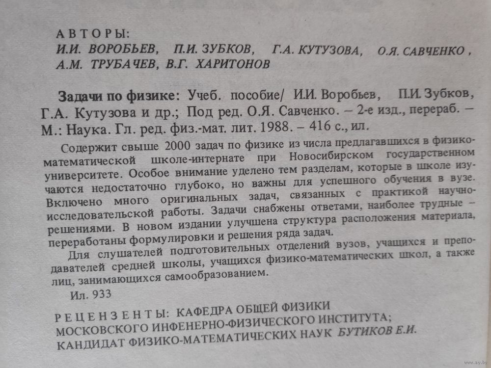 Содержит свыше 2000 задач по физике из числа предлагавшихся в физико- математической школе-интернате при Новосибирском государственном университете. Особое внимание уделено тем разделам, которые в школе изучаются недостаточно глубоко, но важны для успешного обучения в вузе. Включено много оригинальных задач, связанных с практикой научно- исследовательской работы. Задачи снабжены ответами, наиболее трудные - решениями. В новом издании улучшена структура расположения материала, переработаны формулировки и решения ряда задач.