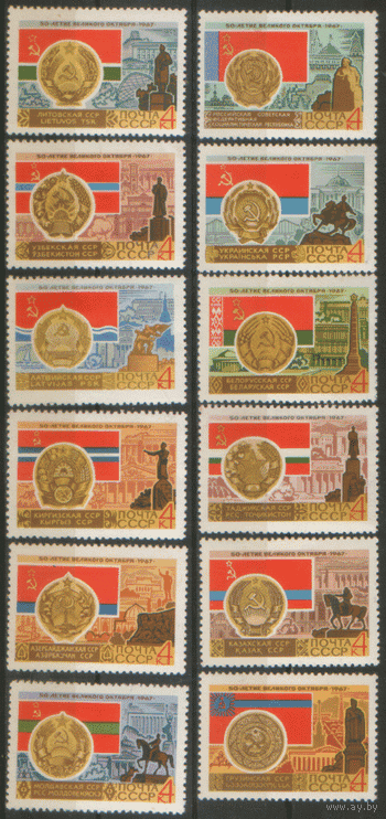 Заг. 3418/33. 1967. 50 лет Октябрьской революции. Гербы и флаги СССР и союзных республик.