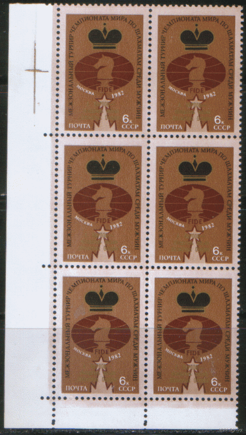 Заг. 5265. 1982. А. Карпов -- обладатель 8 "Шахматных Оскаров". НДП. Шестиблок. ЧиСт.