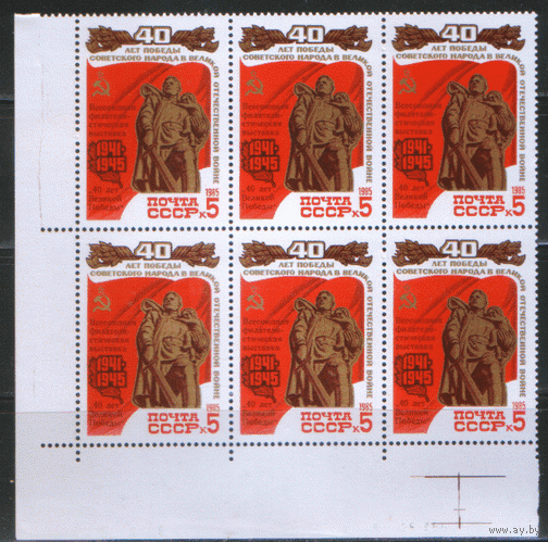 Заг. 5559. 1985. Всесоюзная фил. выставка "60 лет Великой Победы". ШЕСТИБЛОК. ЧиСт.