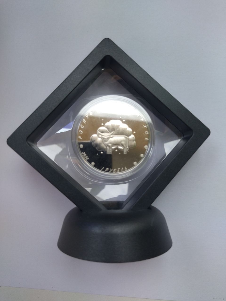 Новая медно-никелевая монета номиналом 1 рубль в капсуле (не вскрывалась) и в 3D рамке (см. фото). При необходимости - из 3D рамки легко достаётся.