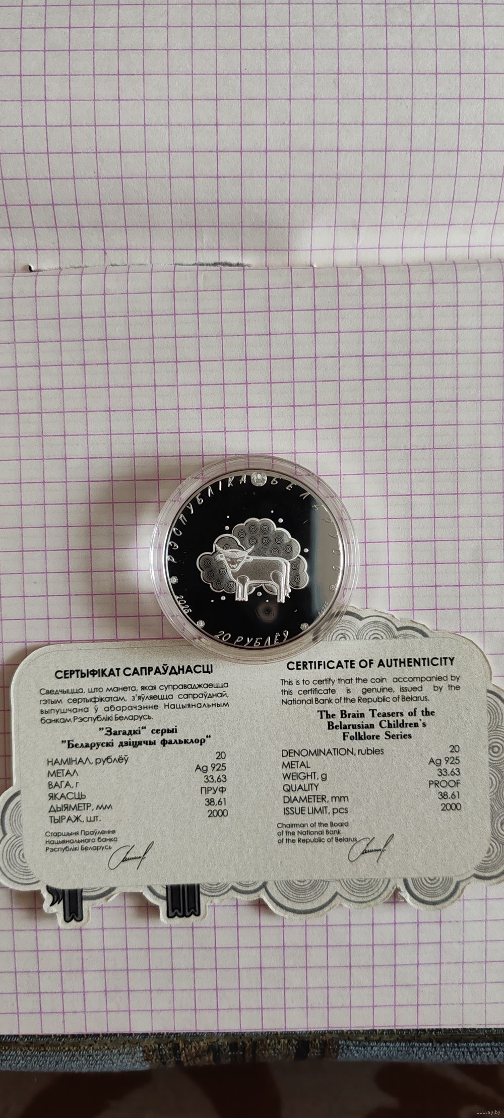 Загадки серии Беларускі дзіцячы фольклор 20 рублей серебро 2025 республика Беларусь