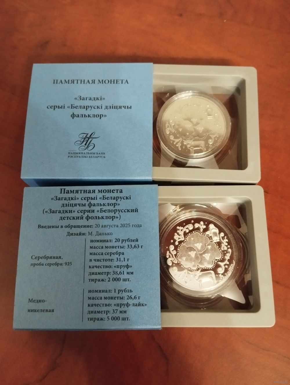 ”Загадки“ серии ”Белорусский детский фольклор“ . Рамка, футляр, 3D. Подарочный вариант, с именной обложкой, черная. Для медно-никелевой или серебряной монеты.
