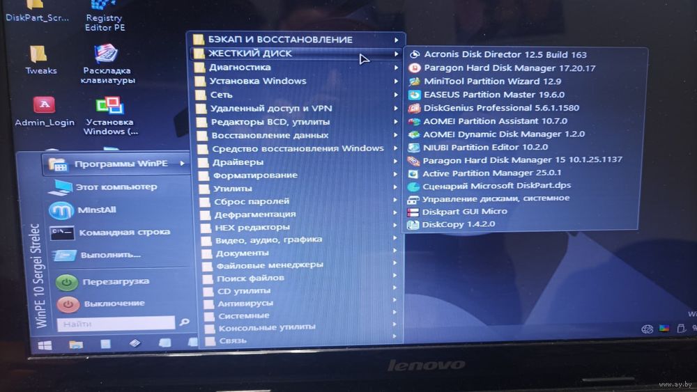 Огромный и широкий выбор утилит уже ждут ваших команд (смотрите фото). Кроме всего прочего, на флэшке находятся три образа с различными версиями Windows, которые достаточно развернуть за 10 минут на свой диск и они готовы к работе сразу же, без всяких мучительных настроек и установок программ.